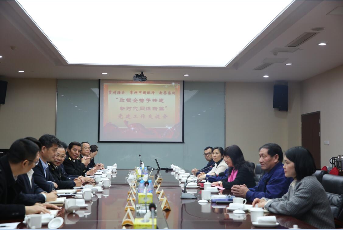 為深入學習貫徹黨的十九大精神,深刻領會十九大對全面從嚴治黨作出的新部署新要求,著力推動黨建工作實現新提升,12月6日下午,常州海關黨組書記、關長郭炳志,常州中國銀行黨委書記、行長王海軍,分別帶領常州海關黨組、常州中國銀行黨委領導和有關同志走進新譽集團,開展“政銀企攜手共建  新時代同謀新篇”黨建工作交流會。新譽集團黨委書記、副總裁戈亞琴攜集團黨務干部和有關人員一起參加。