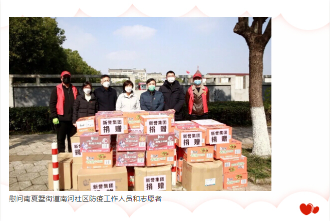 新冠肺炎疫情發生以來,新譽集團黨委書記、副總裁戈亞琴心系武漢,積極響應江蘇省婦女兒童福利基金會及眾多愛心媒體和單位發起的“在你身邊 · 抗擊疫魔”行動,積極捐款捐物,通過江蘇省婦聯采購6000只KF94韓國口罩,第一時間派送到武漢,支援戰斗在第一線的醫護人員。