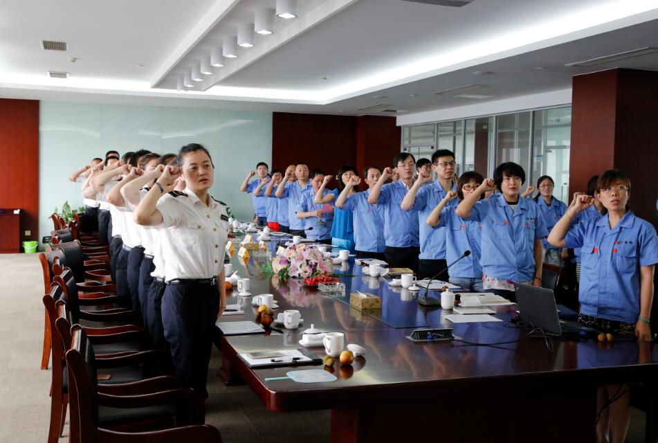 隨后,在集團(tuán)黨委副書記、行政黨支部書記杜伯坤的領(lǐng)讀下,全體黨員,面向黨旗,舉起右拳,莊嚴(yán)宣誓。重溫入黨誓詞使心靈再次受到震撼,進(jìn)一步激勵各位黨員牢記黨的宗旨,堅定理想信念,增強(qiáng)責(zé)任意識。